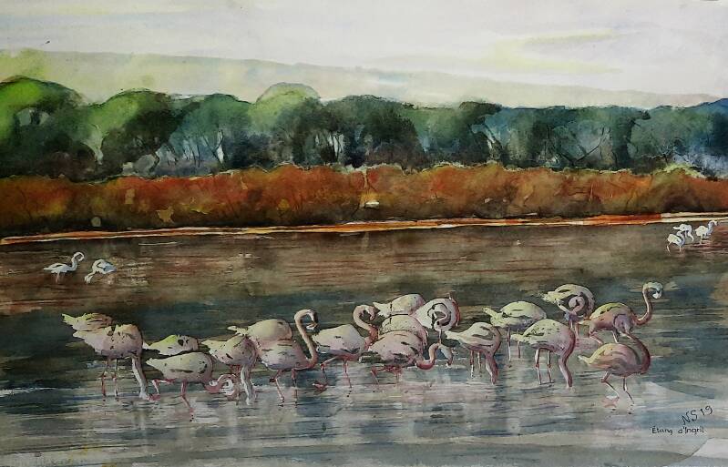 Balaruc-le-Vieux et ses flamants (50x70cm)