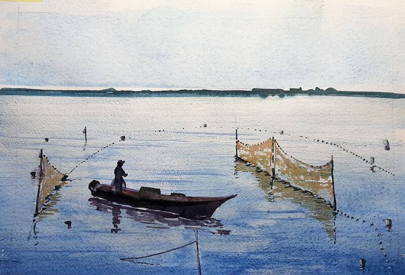 Coucher du soleil sur l'Etang de Thau (40x60cm)