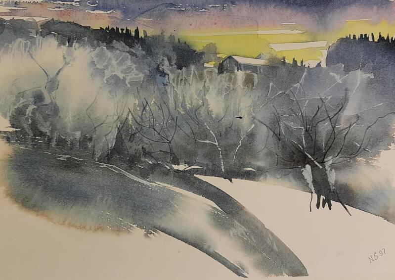 Cerisiers en hiver au Jura en Suisse 30x40cm